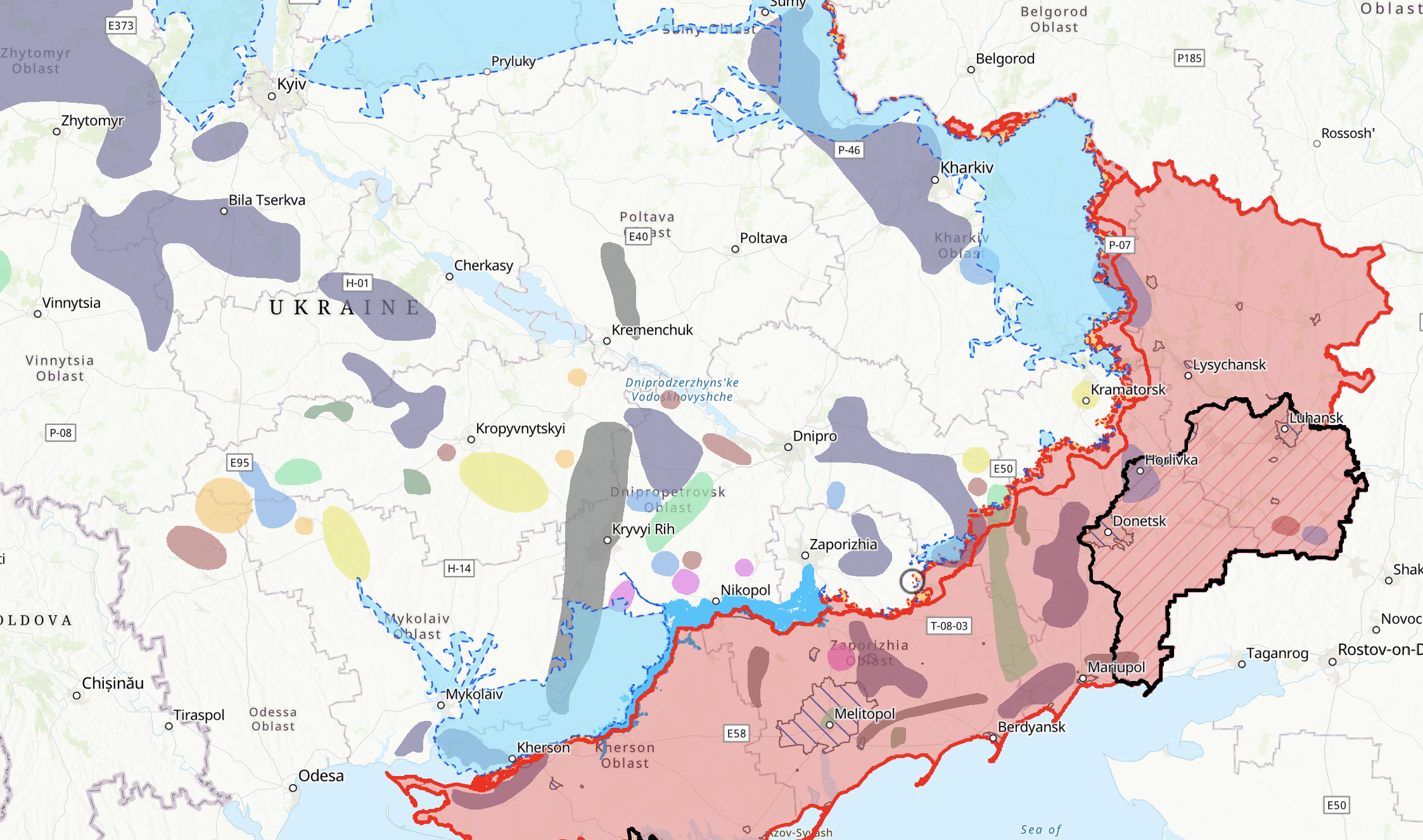 The intersection will be considered captured if any part of the intersection is shaded red on the ISW map (https://storymaps.arcgis.com/stories/36a7f6a6f5a9448496de641cf64bd375) by the resolution date. If the area is not shaded red by the specified date, the market will resolve to “No”.
